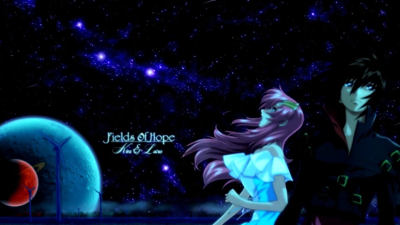 ลึกลงภายใต้ผืนม่าน อันแสนเหน็บหนาวนี้ (Konna ni tsumetai tobari no fukaku de) ตัวเธอกำลังนอนหลับฝันอยู่เดียวดาย (Anata wa hitori de nemutteru) ขับกล่อมบทเพลงอธิษฐาน ณ ผืนแดนเวิ้งว้าง (Inori no utagoe sabishii nohara wo) พร้อมแสงไฟดวงน้อยที่ส่องสว่างมา (Chiisa na hikari ga terashiteta) คอยเฝ้ามองดูเหล่าภาพฝันของเธอ (Anata no yume wo miteta) เสียงหัวเราะที่เหมือนดั่งเช่นเด็กน้อย (Kodomo no you ni waratteta) ด้วยคะนึงหวังที่ยังช่างแสนไกล (Natsukashiku mada tooi) แต่นี่ก็คือคำมั่นสัญญาแห่งอนาคต (Sore wa mirai no yakusoku) สักวันหนึ่ง ณ อรุณรุ่งสีขจี (Itsuka midori no asa ni) สักวันหนึ่งจะไปให้ถึงยังที่นั้น (Itsuka tadoritsukeru to) แม้ใต้ผืนฟ้าที่แสนเหน็บหนาว (Fuyugareta kono sora wo) ก็จะยังคงเชื่อมั่น (Shinjiteiru kara) แดนแห่งความหวัง (Fields Of Hope) ในวันที่ถือกำเนิดมา เราล้วนเคยได้รับอ้อมโอบกอด (Umarete kita hi ni dakishimete kureta) ยังเฝ้าถวิลหาฝ่ามือที่แสนอ่อนโยนเหล่านั้น (Yasashii ano te wo sagashiteru) หนึ่งเสียงบทเพลงอธิษฐานได้เลือนหาย และเริ่มขับขานขึ้นใหม่ (Inori no utagoe hitotsu kiete mata hajimaru) สิ้นแรงกำลัง เจ็บปวดชอกช้ำ ก็จะยังดำเนินไป (Tayorinaku setsunaku tsuzuku) สักวันหนึ่ง ณ อรุณรุ่งสีขจี (Itsuka midori no asa e) ข้ามผ่านเหนือทุกราตรีกาล (Subete no yoru wo koete) เราแต่ละคนนั้นก็เพียงแค่ (Sore wa tada hitori zutsu) เฝ้าตามหาสถานที่ซึ่งคอยใฝ่ฝันถึง (Mitsukete yuku basho dakara) ยามนี้ภายในดวงใจนั้นเพียง (Ima wa tada kono mune de) อยากมอบความอบอุ่นแด่เธอ (Anata wo atatametai) ด้วยคะนึงหวังที่ยังช่างแสนไกล (Natsukashiku mada tooi) เพื่อสันติภาพอันสงบสุข (Yasuragi no tame ni) แดนแห่งความหวัง (Fields Of Hope) ด้วยคะนึงหวังที่ยังช่างแสนไกล (Natsukashiku mada tooi) ดินแดนแห่งคำมั่นสัญญา (Yakusoku no nohara) แดนแห่งความหวัง (Fields Of Hope) แดนแห่งความหวัง (Fields Of Hope)